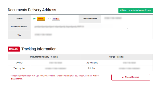 After the 5~10 days of vessel departure, the Draft B/L will be uploaded at ”My Order” page. Check the information carefully and ask for a change if the information is incorrect.
