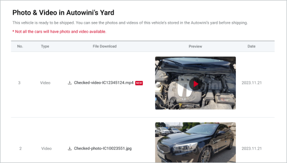After the quality inspection, we will capture a video of your vehicle. You can access the updated video on the “My Order” page to assess your vehicle's current condition at the port. You can also get the alarm via Autowini app application.
