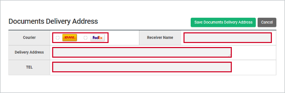 Fill out the exact address where your documents should be delivered to. Autowini dispatch the shipping documents using DHL or Fedex. Please refer to the document types we send. Some docs might require an additional fee. (Click)